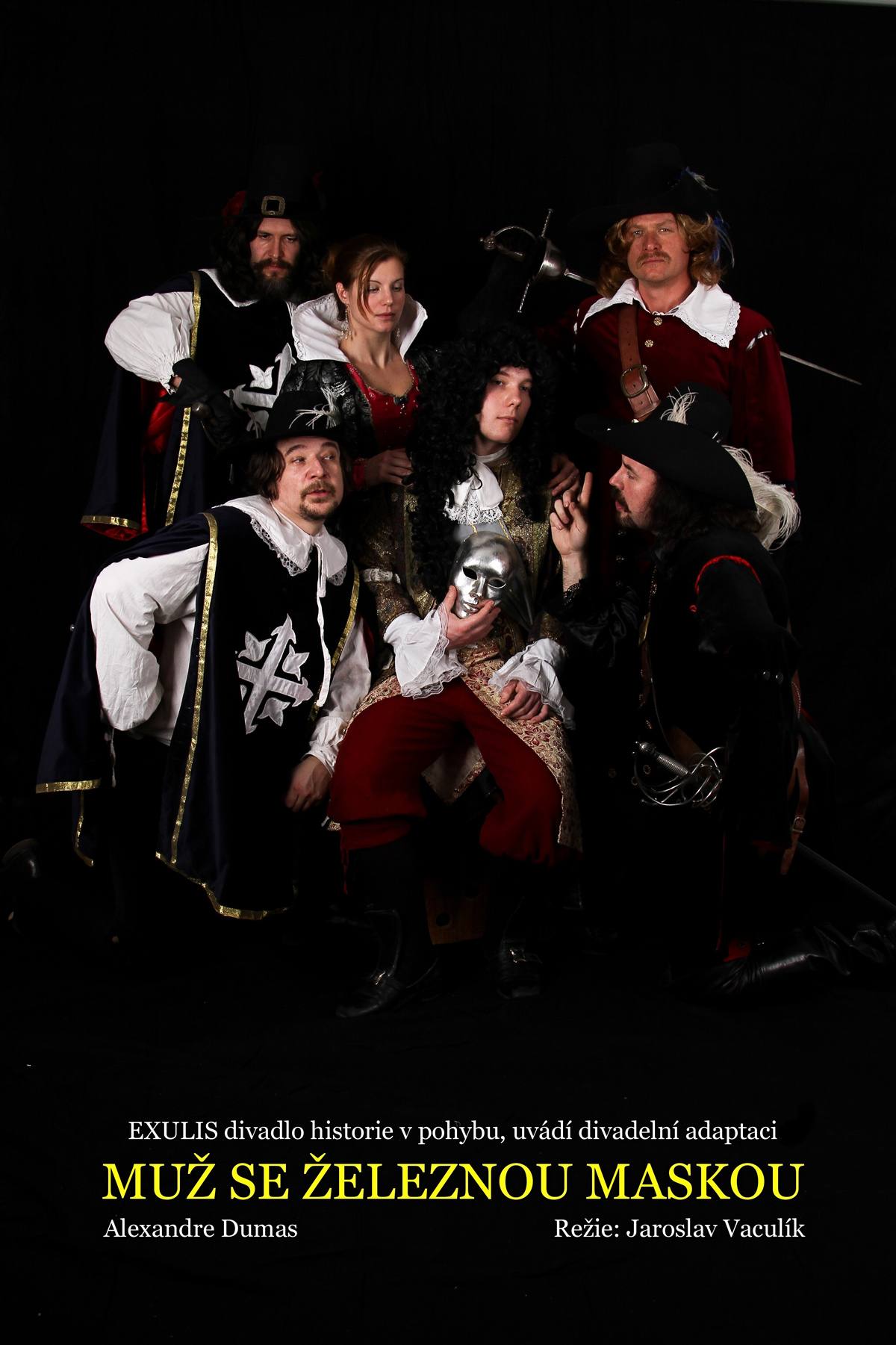 Divadelní adaptace podle námětu A. Dumase. Dobrodružný a romantický příběh vypráví o krutém osudu královského prince zakutého do železné masky, který nikdy neměl spatřit světlo světa. Právo a spravedlnost však tentokrát ponese jména slavných a obávaných královských mušketýrů Athose, Porthose, Aramise a dArtagňana , kteří navzdory svému přátelství budou rozděleni vůli krále Ludvíka XIV. Podaří se jim najít odvahu a staré přátelství a dosadit na královský trůn právoplatného dědice?